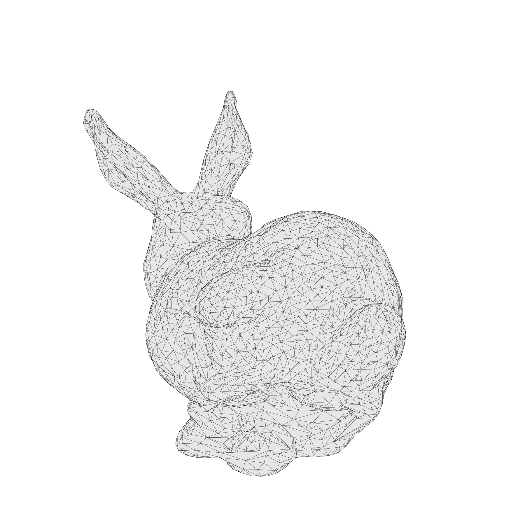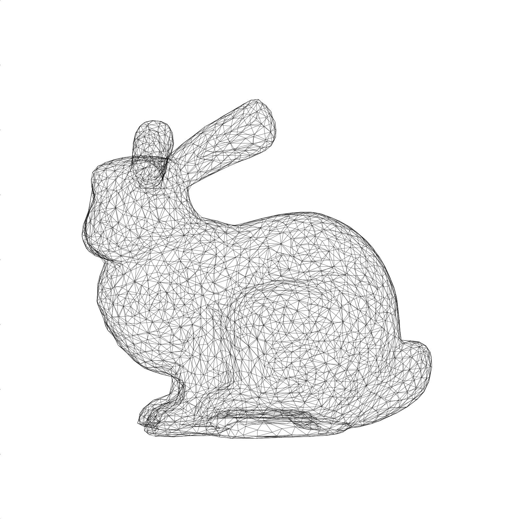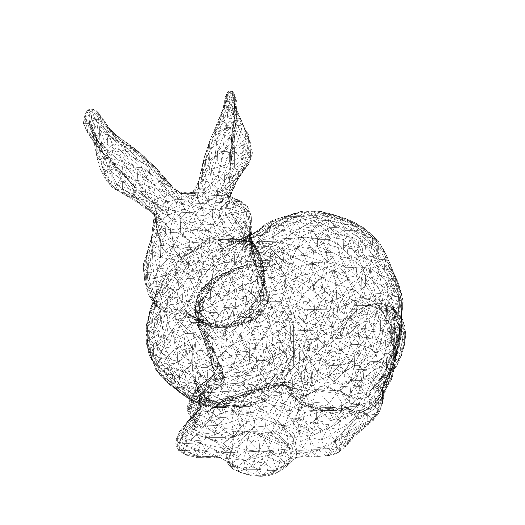 First things first, we need to load our model. We’ll use a simplified version of the Stanford bunny. The file uses the wavefront format which is one of the simplest format, so let’s make a very simple (but error-prone) loader that will just do the job for this post (and this model):