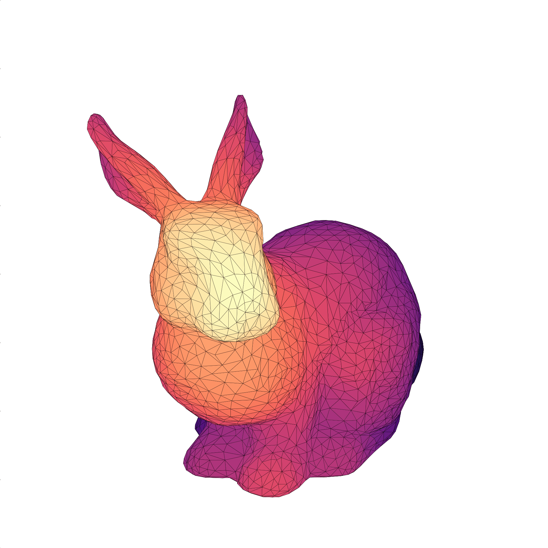 Matplotlib has a really nice 3D interface with many capabilities (and some limitations) that is quite popular among users. Yet, 3D is still considered to be some kind of black magic for some users (or maybe for the majority of users). I would thus like to explain in this post that 3D rendering is really easy once you’ve understood a few concepts. To demonstrate that, we’ll render the bunny above with 60 lines of Python and one Matplotlib call. That is, without using the 3D axis.