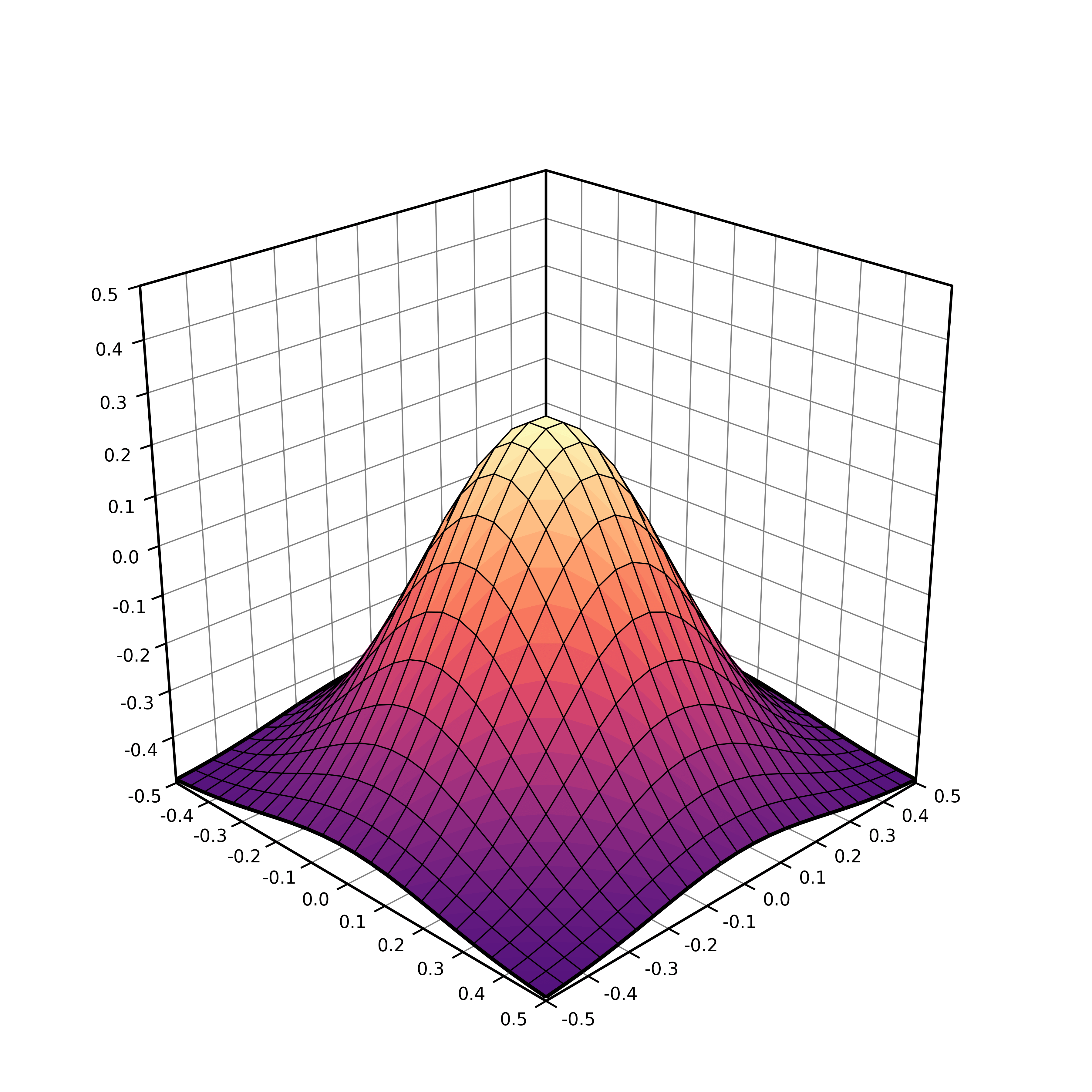 Let’s add some colors using the depth buffer. We’ll color each triangle according to it depth. The beauty of the PolyCollection object is that you can specify the color of each of the triangle using a NumPy array, so let’s just do that: